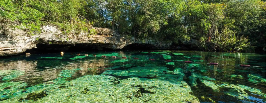 Just outside Leona Vicario, La Noria welcomes you with its partially covered cave system. Crystal-clear waters reveal fascinating rock formations below.