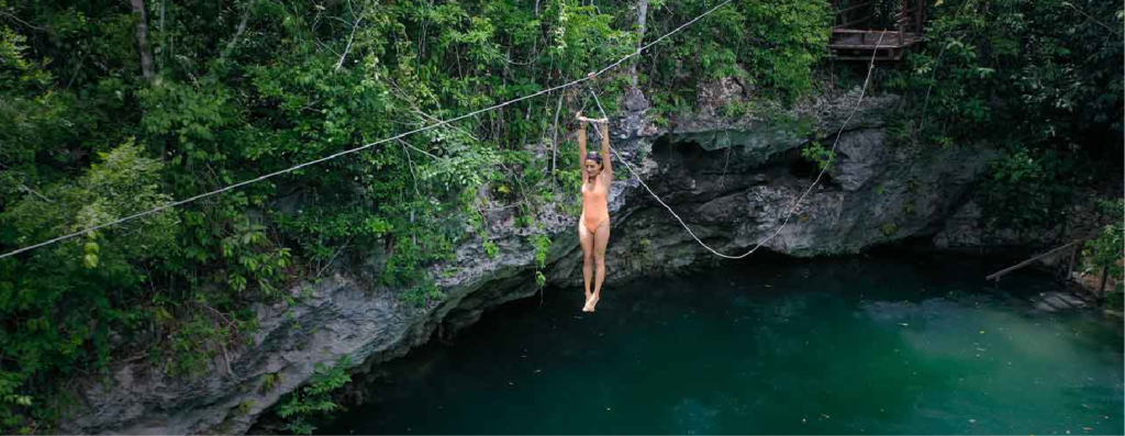 The wooden platform and rope swing were added recently, but the crystal-clear waters remain unchanged since Mayan times.